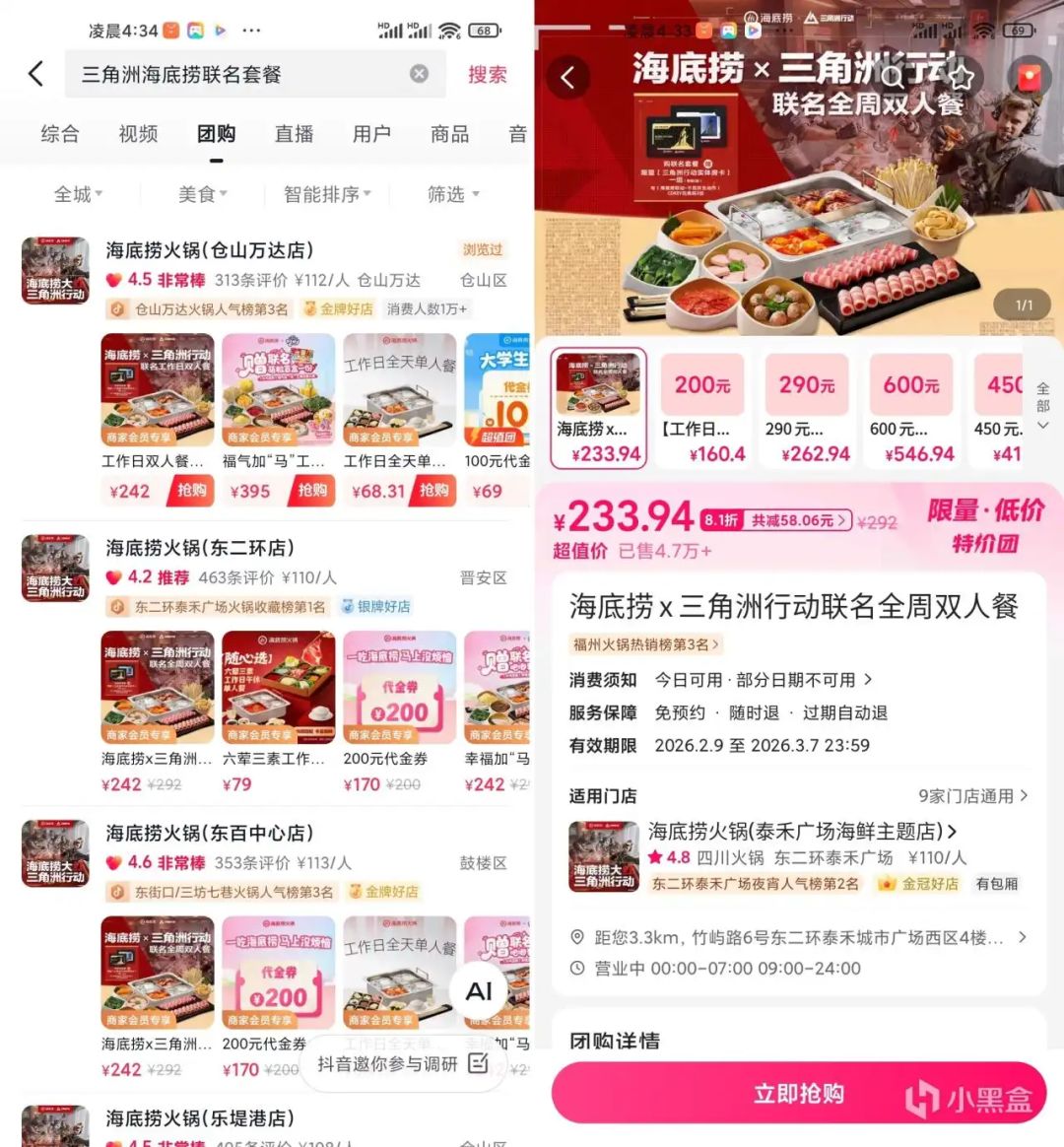 今天海底捞的联动套餐活动开始了,还有一些干员们不太清楚怎么看联动周边剩余数量,如何获取兑换CDK等等问题,这里给各位想要参加这次活动但是不太懂的干员们做了一份攻略。首先第一步是购买套餐,可以在美团和抖音搜索三角洲海底捞联名双人餐购买