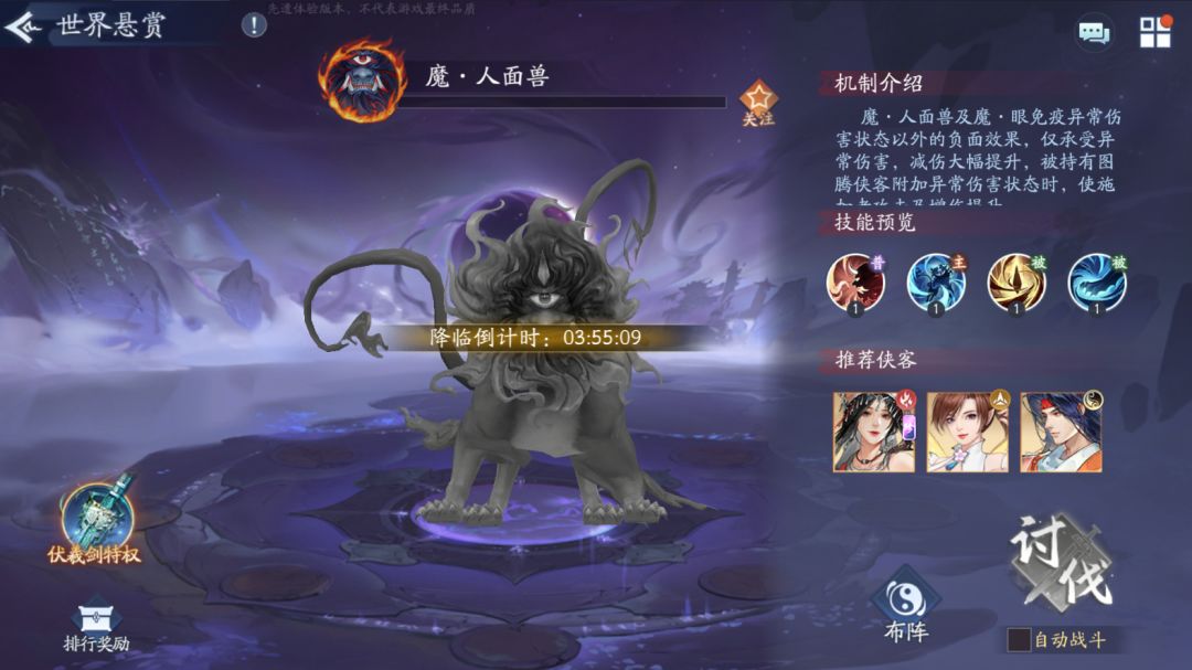 封魔挑战boss——魔·人面兽在先前的帖子已经为大家做过重点介绍,这里不做重复解说