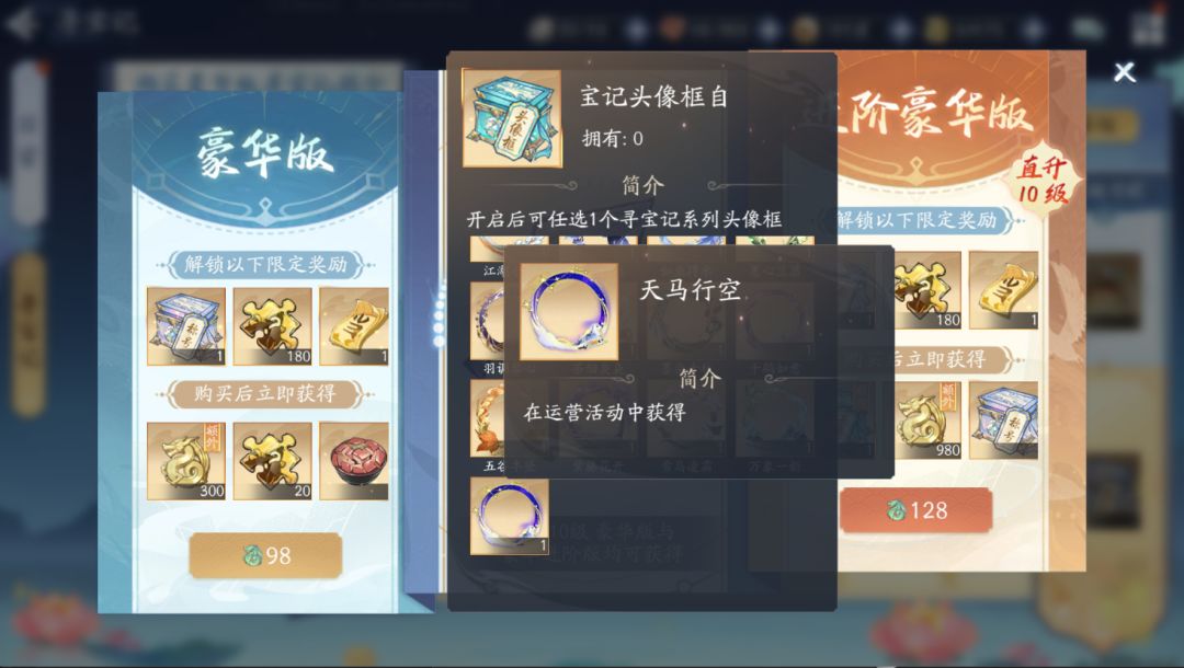 (2)寻宝记头像框自选箱,称号自选箱新增——天马行空,我们这里也为大家予以展示