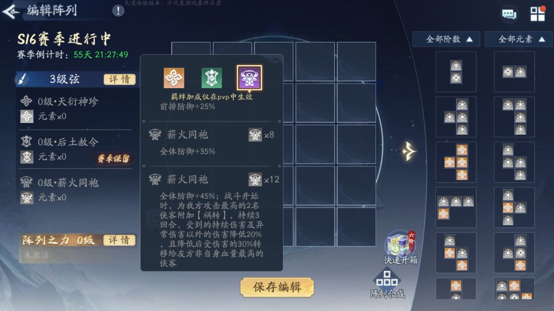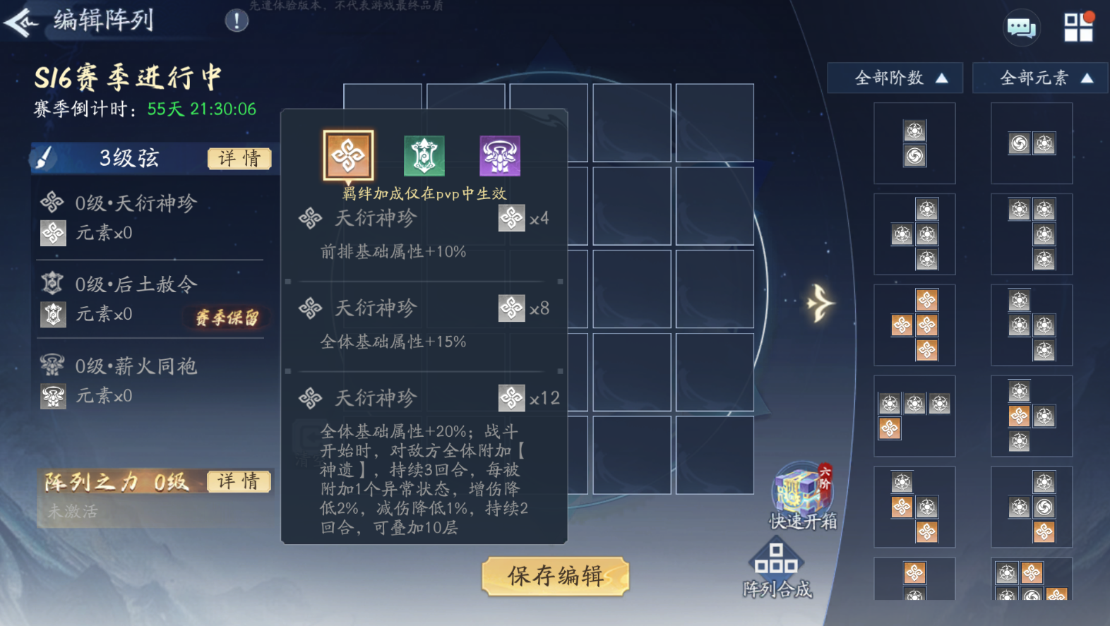 本赛季S16己卯赛季归墟盘的三种元素为:天衍神珍(基础+随异常双减)、后土赦令(攻击+抗暴恢复/赛季保留)、薪火同袍(防御+降低转伤)