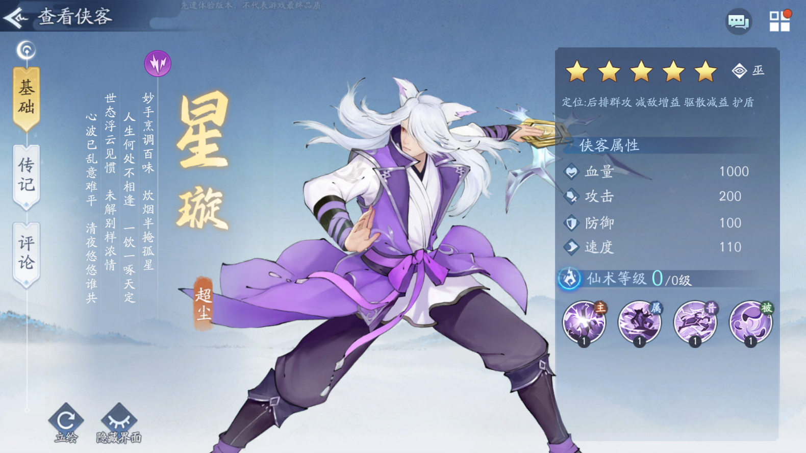 全体防御 + 45%;战斗开始时,为我方攻击最高的 2 名侠客附加【祸转】,持续 3 回合,受到的持续伤害及异常伤害以外的伤害降低 20%,且降低后受伤害的 30% 转移给友方非自身血量最高的侠客