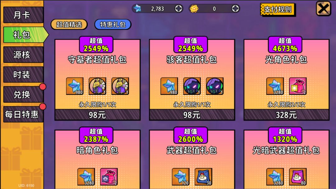 游戏商城兑换商店,星磐商店、公司商店、隧道商店等可兑换一些角色,直接获得,拥有足够的商店货币甚至宽裕直接满星。此外礼包商店还有守墓者、骇客及光暗角色礼包,小铁们可自由选购。