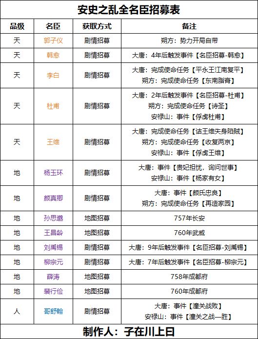 【无悔攻略】安史之乱名臣招募表
