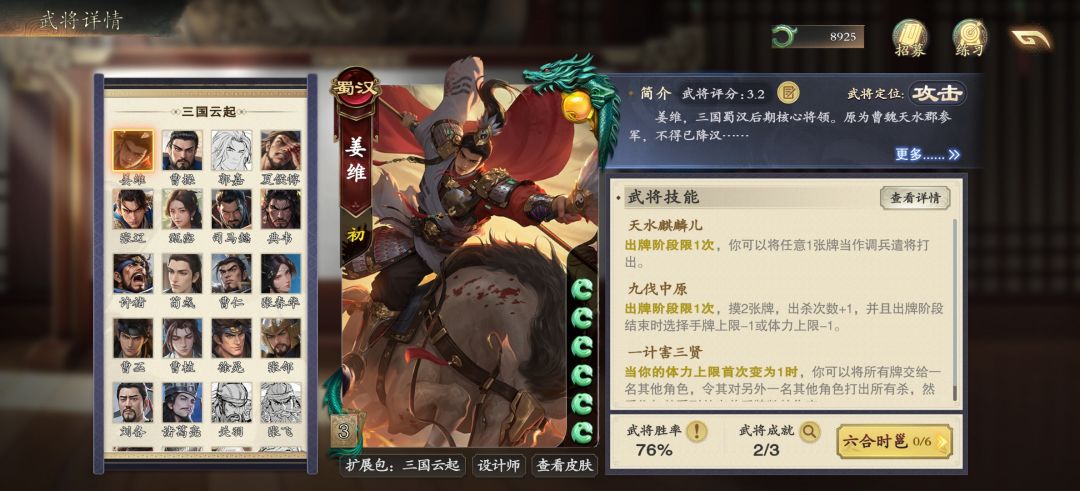 练习:姜维:(请按以上模板与以下线索推断姜维的生态位,并评价他是否过弱不能满足职责故需要增强)