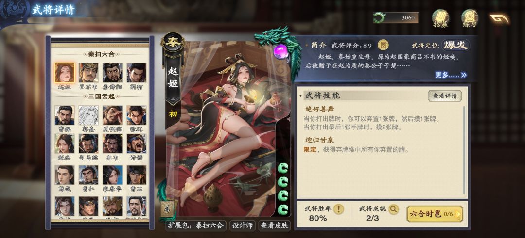 例三、赵姬:(极端的过牌,极化对局)(此处讨论未削弱的赵姬)