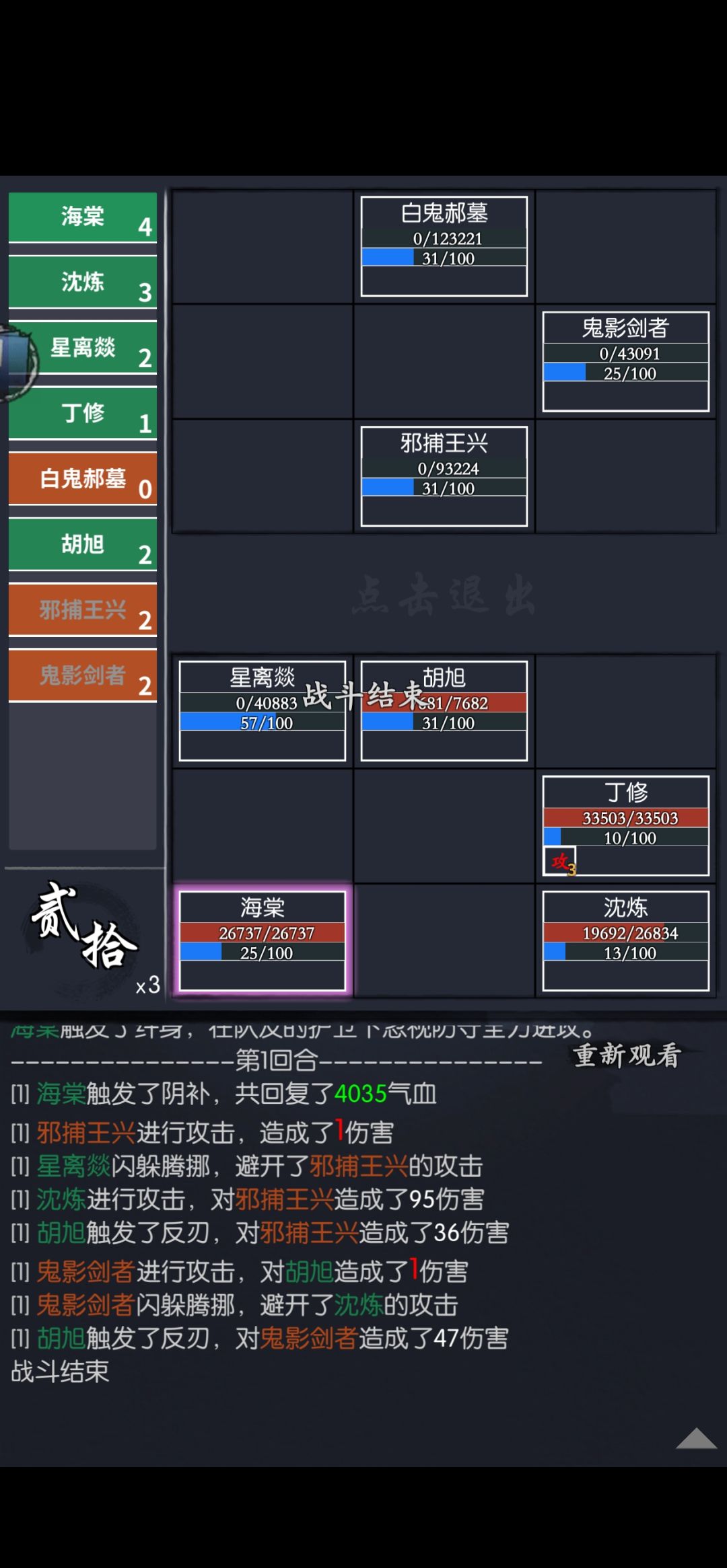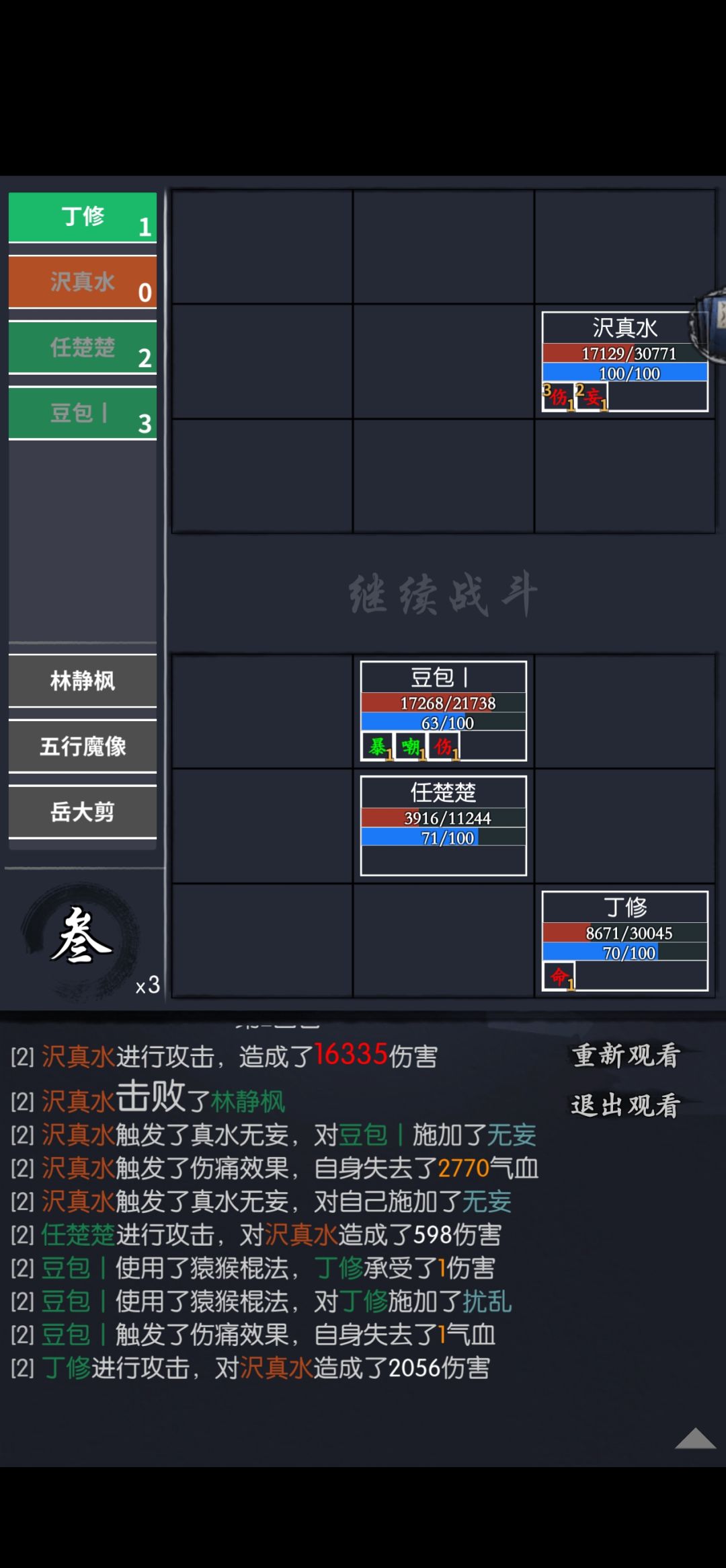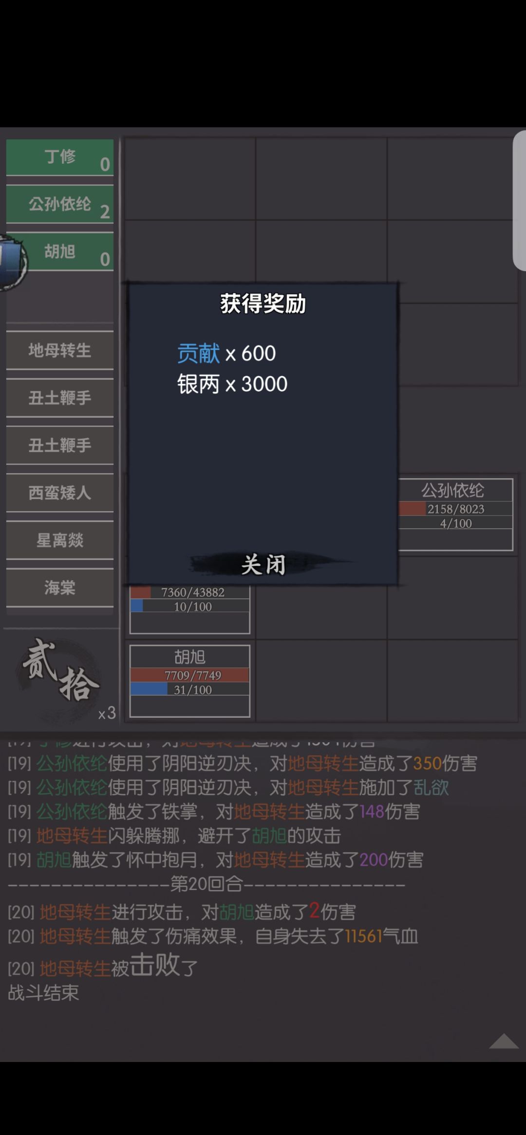 3.逃课必备。胡丁或者公孙丁的组合,在面对电脑人的时候有着无与伦比的优势。一个打不死的前排和一个在后排挂流血的输出。如果是公孙丁的话,配个仪摇,面对单体BOSS几乎就是碾压。