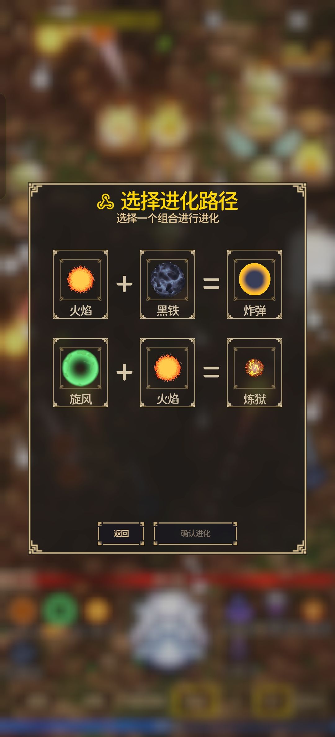 打怪有概率掉落融合进化,升级就是随机升级没满级的,纯看运气