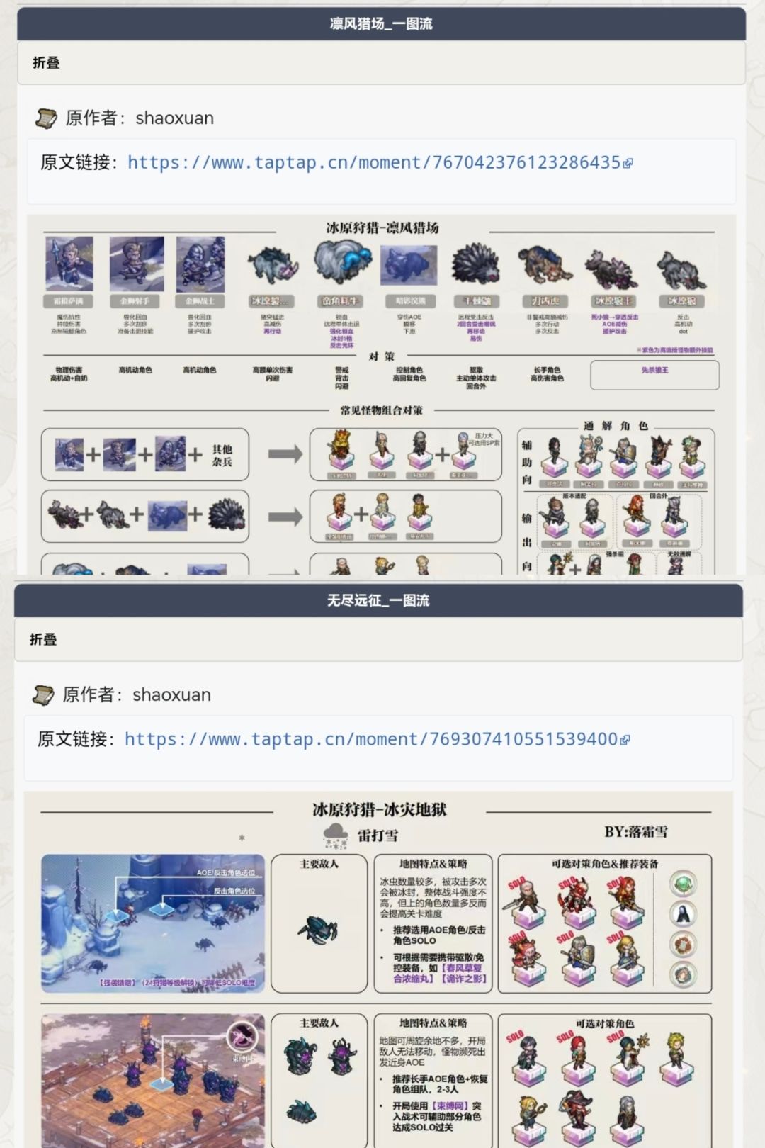 2.【狩猎委托】主要为常驻门内关卡的攻略技巧收录整合(会标明出处),主要内容分为一图流和视频攻略,会逐步更新。这部分的板块为Azhar大佬收录更新。