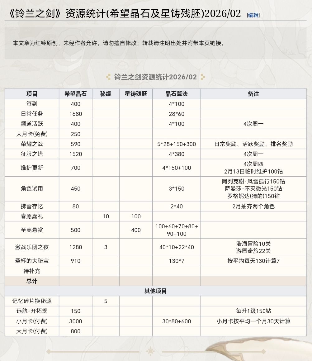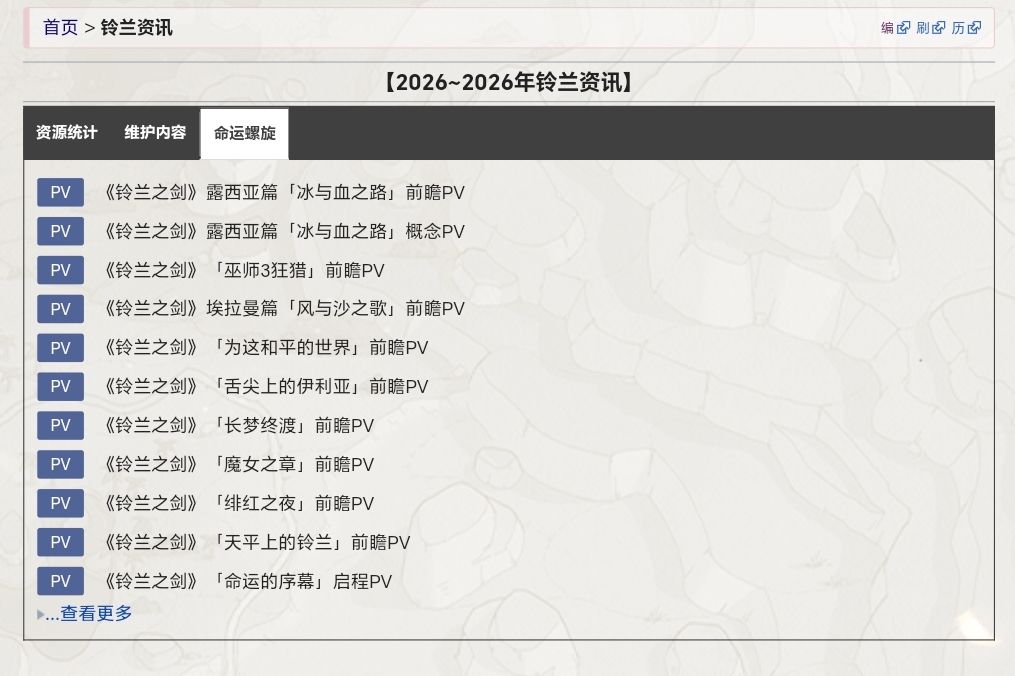 3.【铃兰资讯】由资源统计、维护内容公告、前瞻PV收录组成。资源统计主要统计每月获得的希望晶石和星铸残胚数量,后续会持续更新。