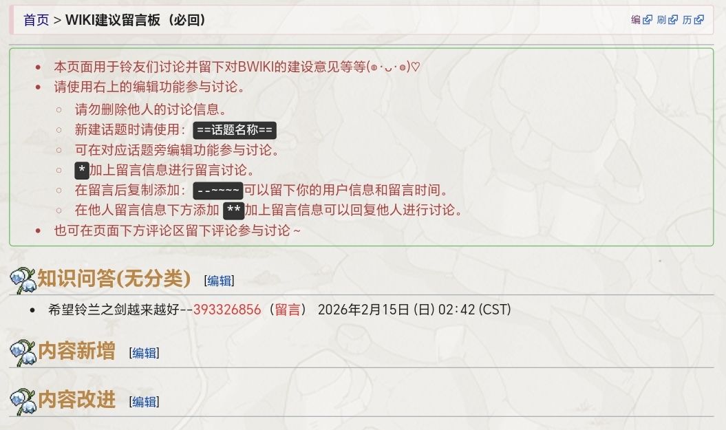 📍铃兰之剑BWIKI(铃兰小站)近期新增内容