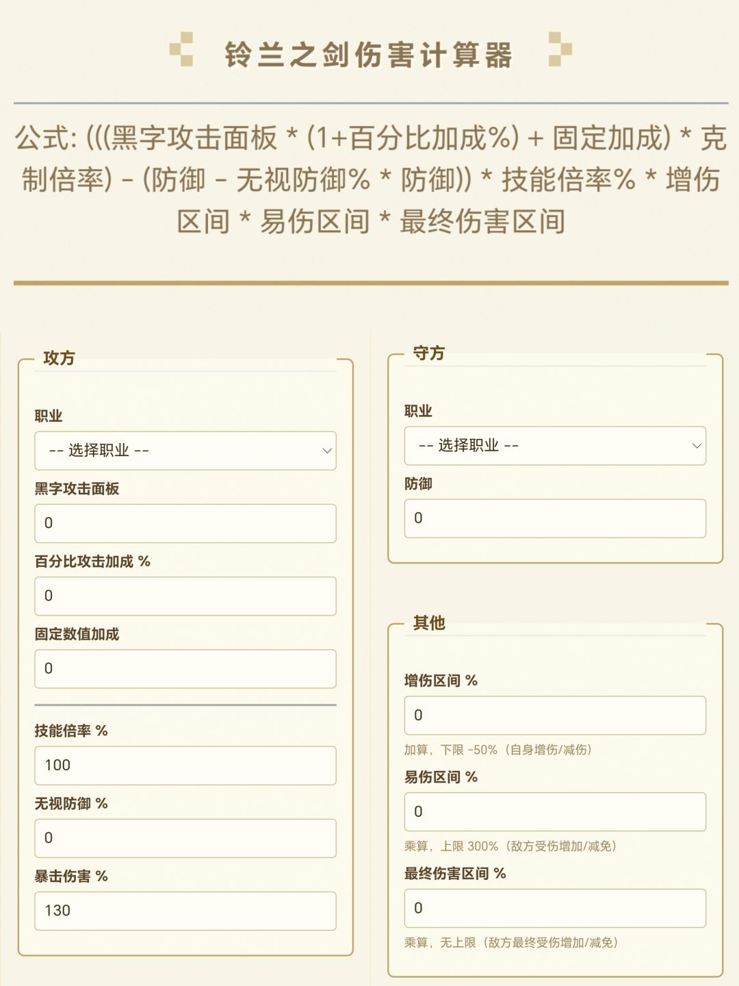 1.首页新增模拟测试:“铃兰之剑伤害计算器”。
