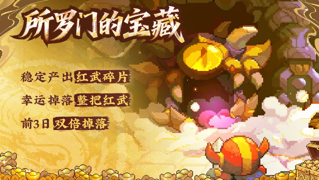 所罗门的宝藏限时开启!消耗魔界钥匙进入所罗门的宝藏,限定时间内还能享受武器碎片掉落翻倍的加成。