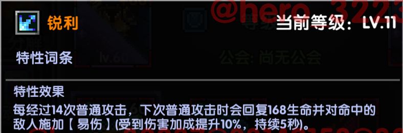 锐利: 勇气套的特性,偏向对单场景,有一条即可,等级不影响数值。