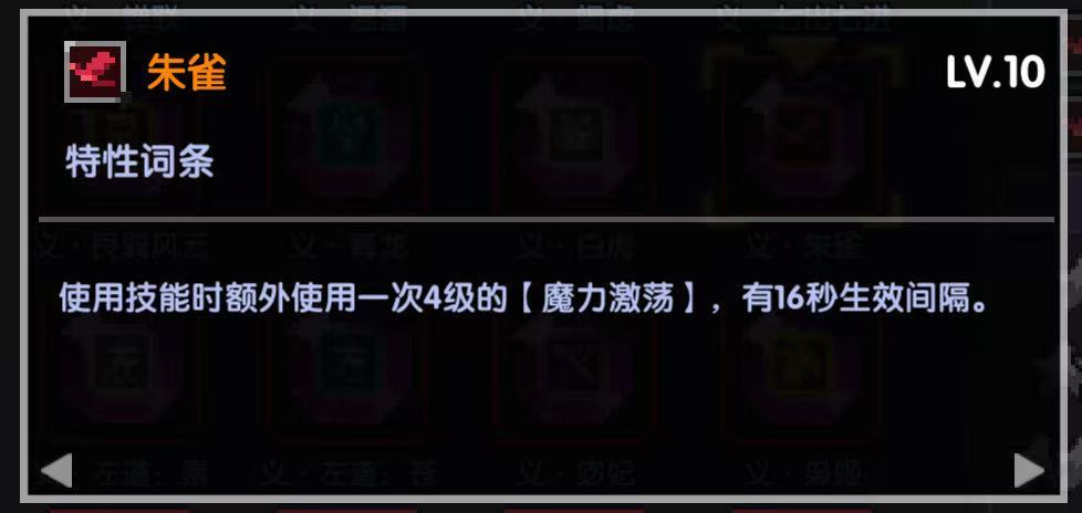 如果前面有用了左道:苍 特性的话,这里的玄幻就直接用朱雀即可,魔力激荡对我们没用,但是可以省一个特性位。