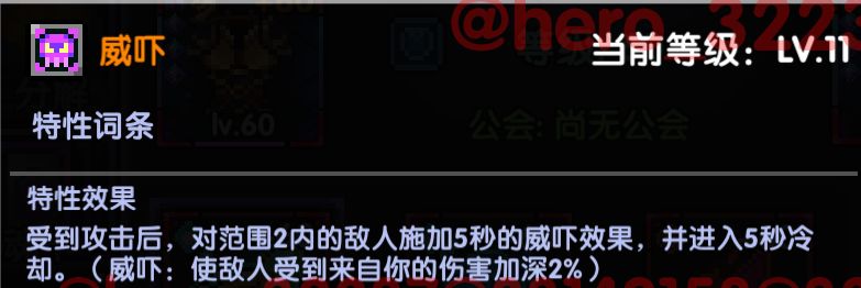 威吓:勇气套的特性,等级会影响数值,至少1条。
