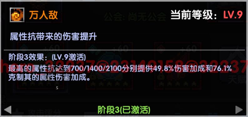 他的描述是每超过300就会额外获得一次属性伤害加成。实际上是300+300X5=1800抗性即可吃满,是低于职业套2100抗性的需求的,大家不用紧张抗性不足。