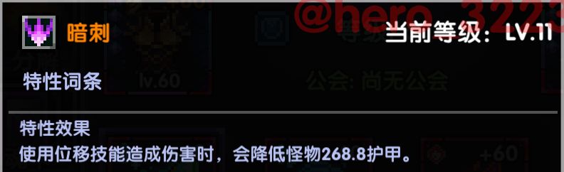 暗刺:勇气套的特性,等级会影响数值,在对单需要穿透的场景配合觉醒技能龙骑使用,新版本对单场景可以灵活选择打几个来补充自己欠缺的穿透。