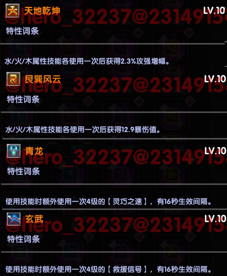 天地乾坤,艮巽风云,青龙,玄武:这3个特性在战士使用时是能做到联动效果的。