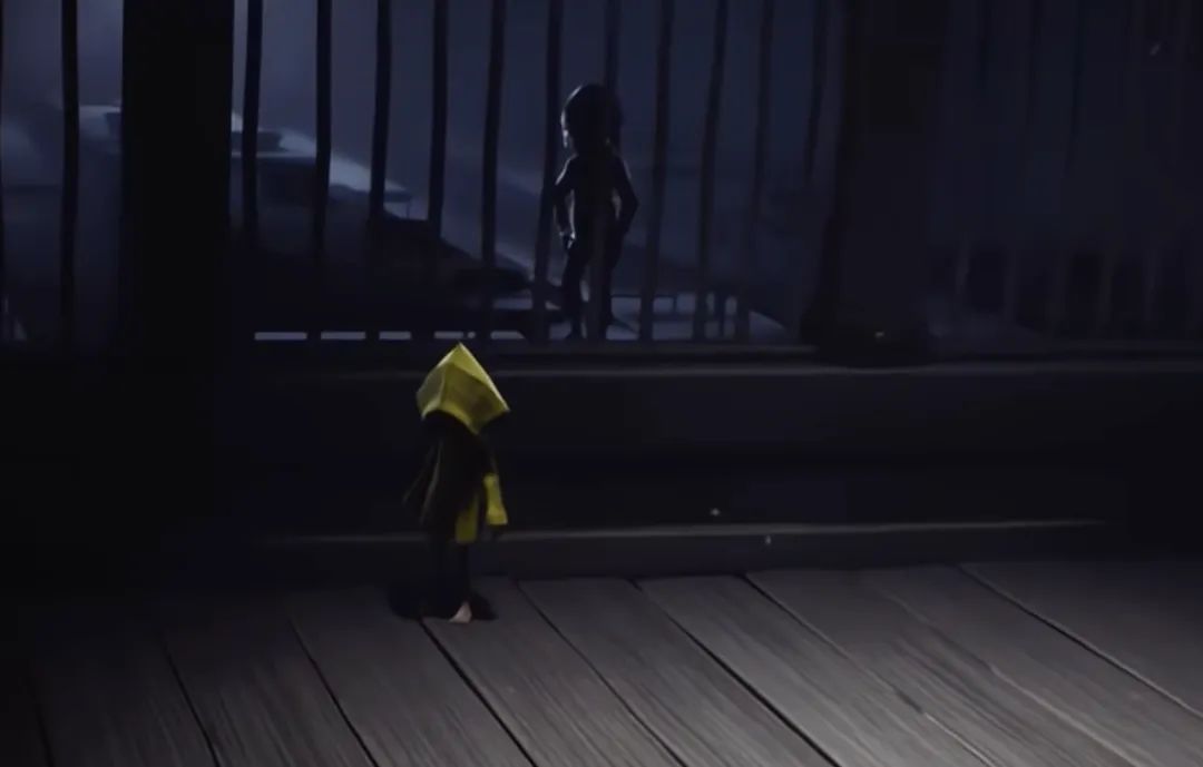 游戏开头,身着亮黄色雨衣的小女孩小六从一艘名叫贪颚号的大船醒来,开始了逃生。
