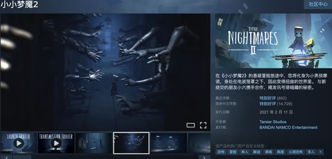 不过第一部并没有把故事讲全,把玩家期待值拉满后,过了4年,《小小梦魇2》发售了。