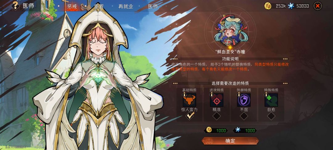 3. 医师。是角色更改副职业、特质等的地方,同样需要花费金币和蓝星。