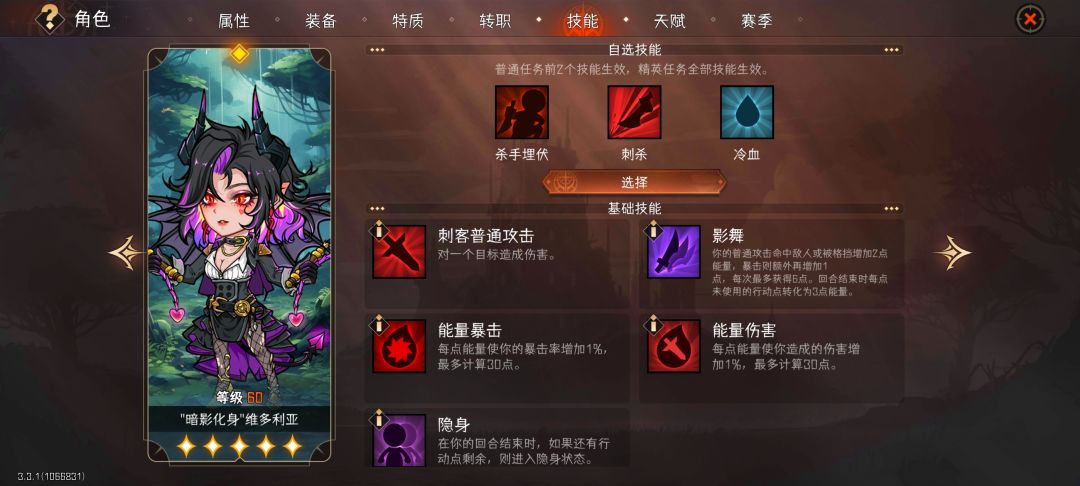 每个进阶职业都有四个转职技能,按需搭配,需要注意技能位置,因为普通任务(7场战斗)只取前两个。而精英任务(13场战斗)取三个技能位。