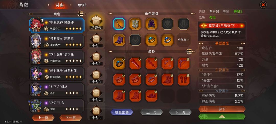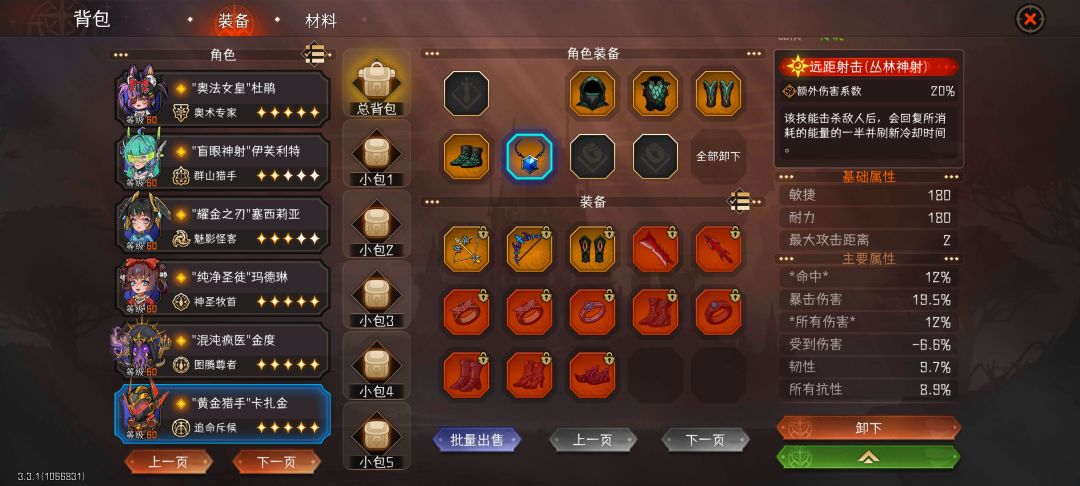 9. 装备,养成中最重要的一项。通过通关副本后获得(即便失败,仍能根据副本中的通关场数获得部分奖励)。 随着难度的增加,装备的品质、等阶和数量也随之增加。