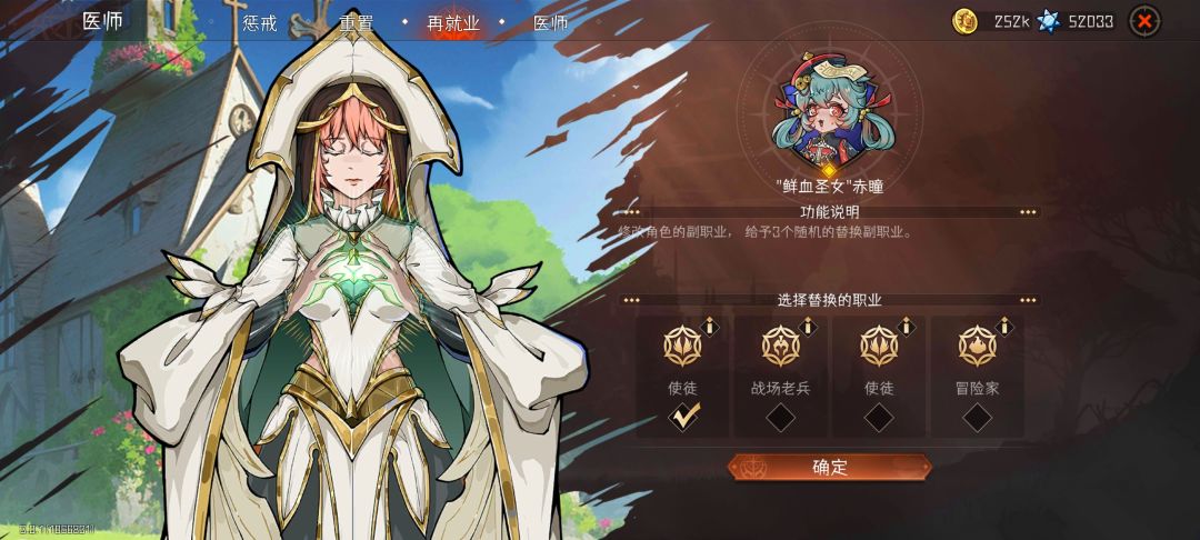 每个角色的副职业是固定的,但可通过医生花费代价(金币+蓝星)进行更改。