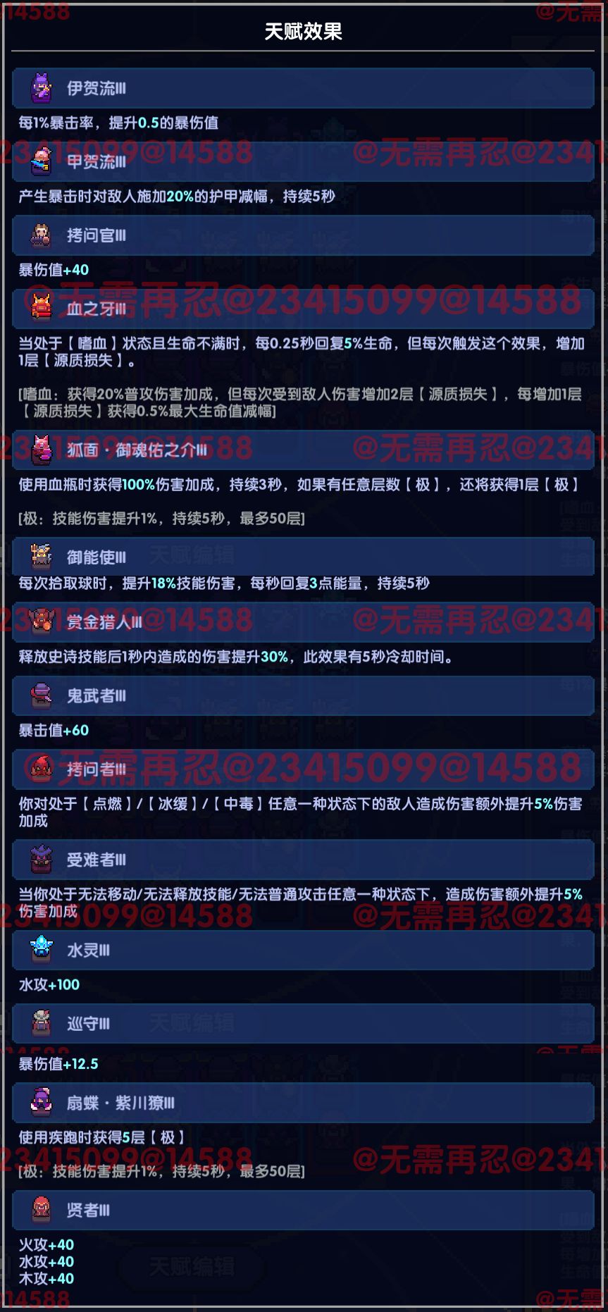 - 洗练词条:元穿+属功/爆伤(忍者洗练9属功最佳,但是还是那句话有啥用啥)