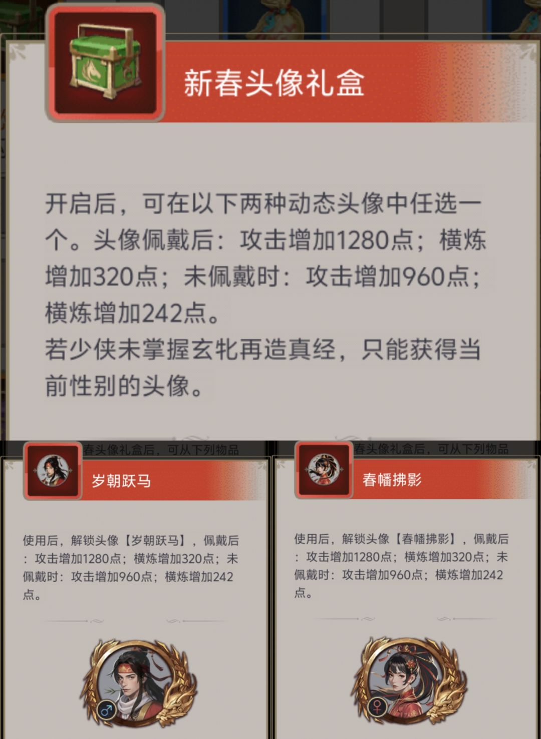 名帖:“东风夜放花千树,更吹落,星如雨。几一枚精致的拜帖,使用后可获得名帖:千灯映雪,使你可拜访隐士侠客,跟随其修行,增强自身攻击、筋骨、招架、暗劲属性。”