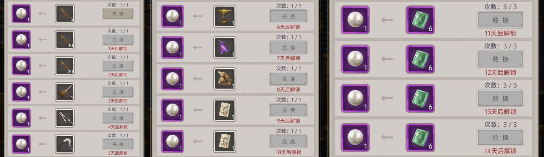 孙无行:白嫖道具兑换珍珠,共11个,氪金兑换珍珠(6玉一个),共12个