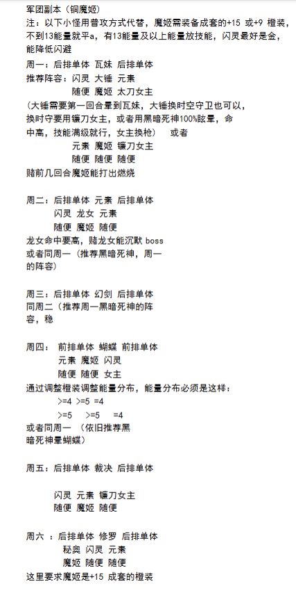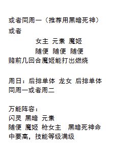 银阶魔姬可不用成套橙装,金阶魔姬配万能阵容打通周一到周日,在黑暗死神命中足够的情况下可直接跳过战斗