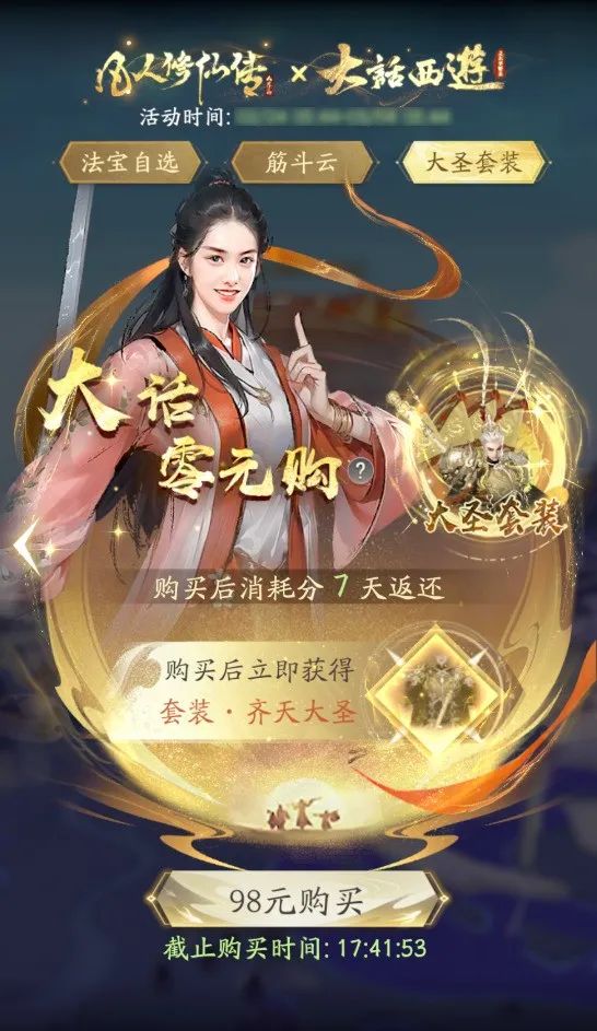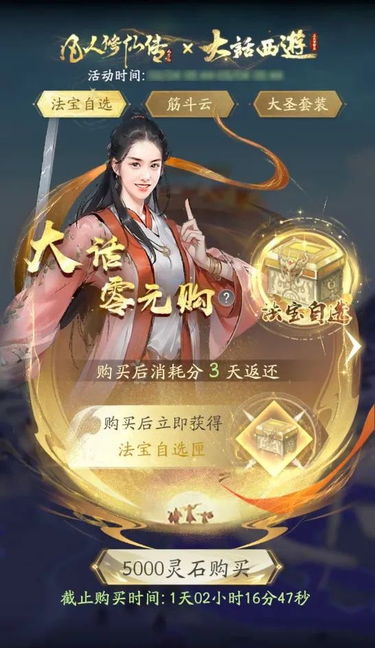 购买所有商品的消耗会在一定天数内返还,道友们如有需要,请记得在截止时间前购买哦!