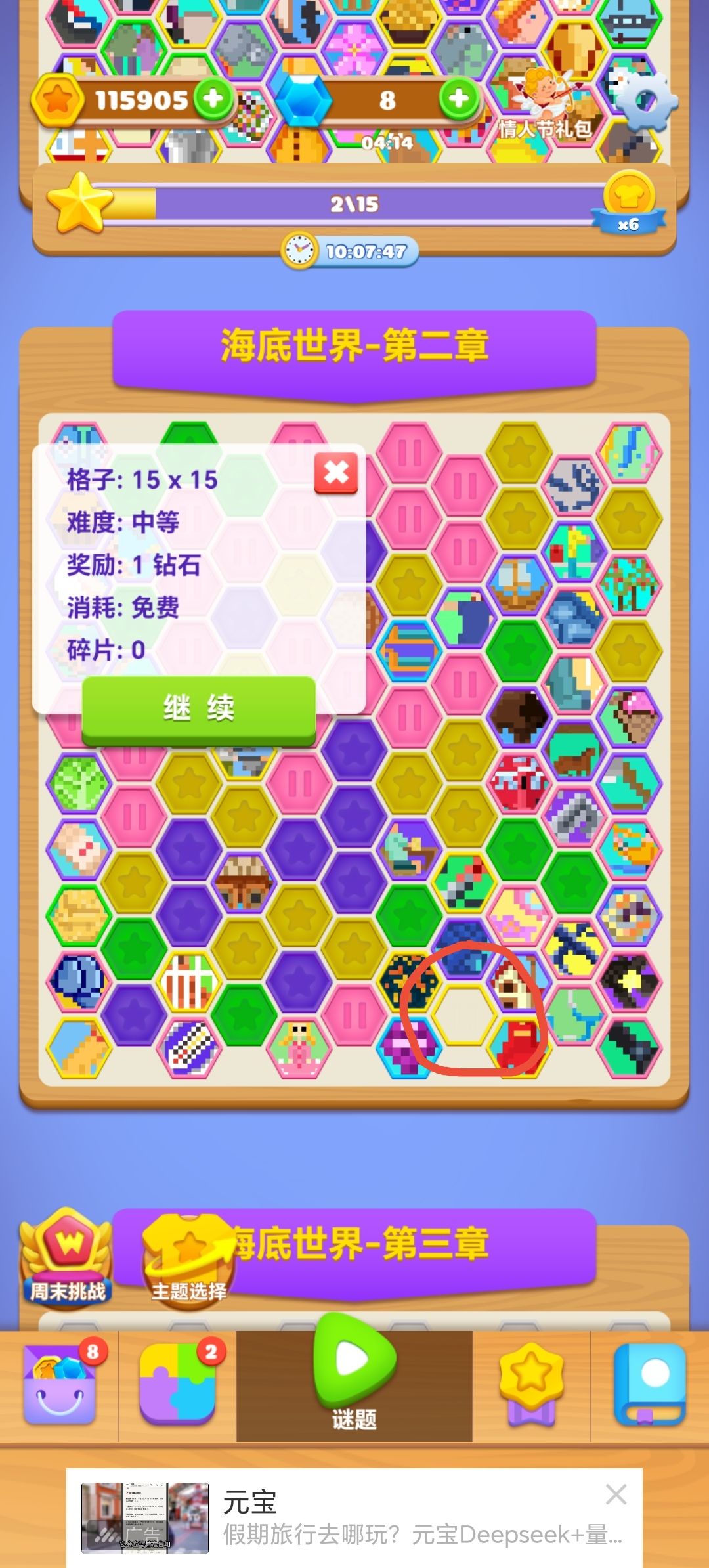 感觉这游戏越玩越有意思,今天,居然被一个黄色题目给难住了,真是太好玩了。也可能是有解法但是没找到吧,有时间喜欢烧脑的可以试着解一下。