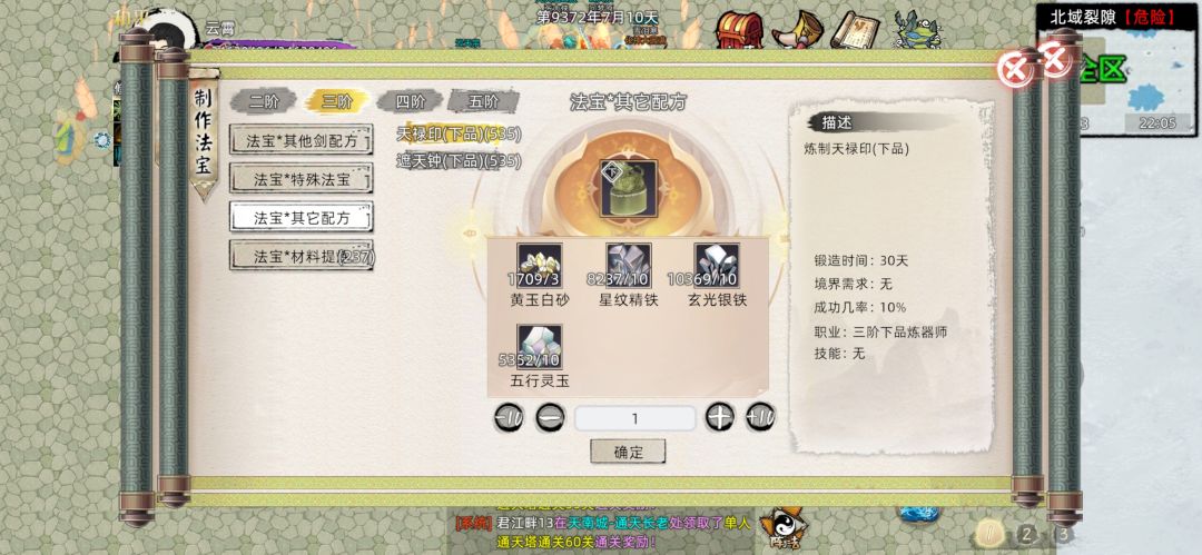 综合评价,可有可无的buff类法宝,自定义法宝成本较为低廉,但是,老登他没有开六级符,也就是说这个法宝的上限锁死在五阶了。。。目前并不推荐制作。