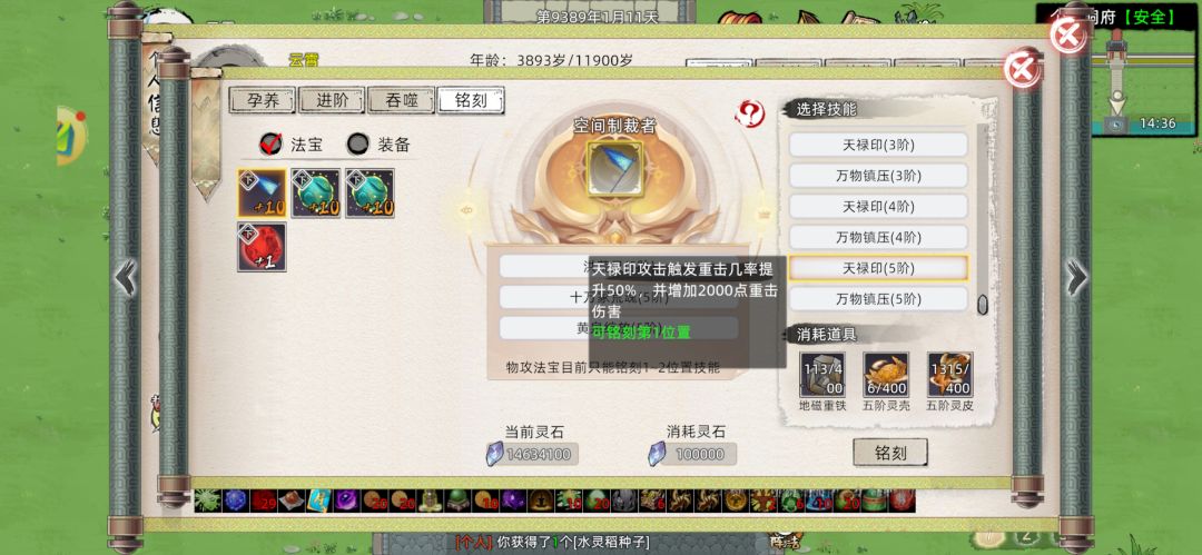 天禄印是重击流法宝的标配他的普通攻击会提高重击概率,遮天钟则是第二个普通攻击带控制的法宝