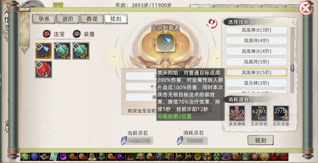 其铭刻二技能的无视防御有点意思,如果后期法宝伤害起来了,配合这个技能,貌似有不俗的伤害