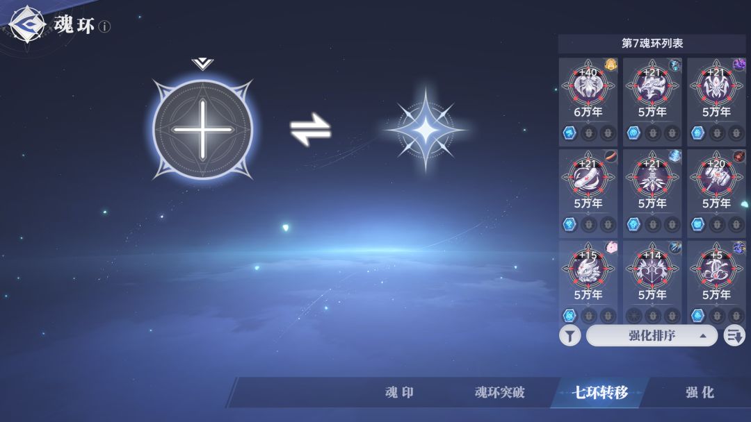 转移规则:仅支持七环与七环之间相互转移,无法和其他等级的魂环进行转移操作。