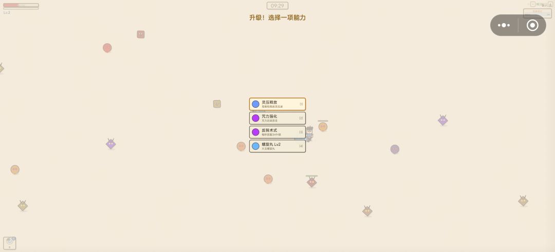 美术风格十分独特,幸存者类游戏的底子没有任何问题,丰富的技能设计与升级。唯一影响体验的是UI比例适配的问题,在移动端发现UI问题之后,后几局我切到了PC端,然而在PC端上UI一样比较小,可能需要创作者进行调整。