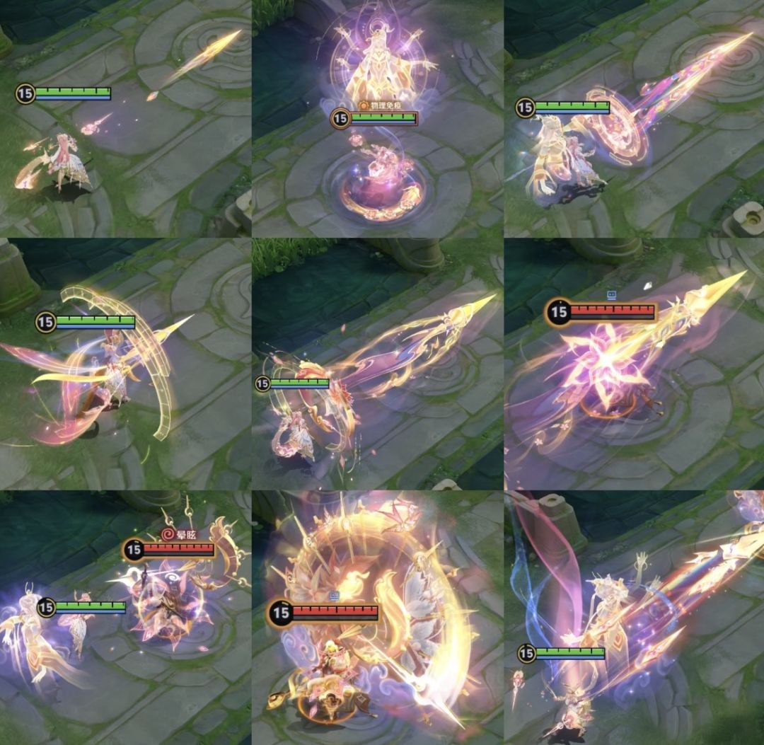 今年马限皮肤的特效明显实了很多,技能特效透明度也有所降低,大范围特效基本上都能完全盖住峡谷地板了。