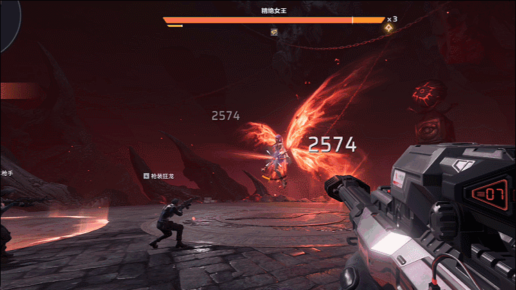 女王化蝶飞向高处鬼眼,激活鬼眼后锁定目标持续进行火焰射击。