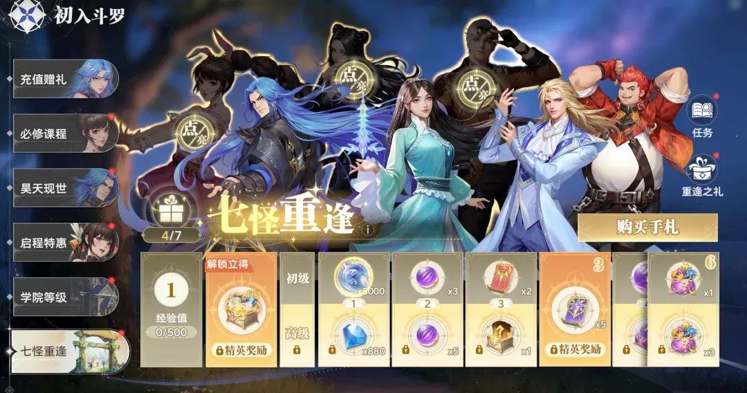 ➢ 解锁精英手札后:可在重逢之礼商店购买七怪重逢礼Ⅱ—九宝白虎自选礼盒(包含九宝琉璃塔、邪眸白虎武魂)。
