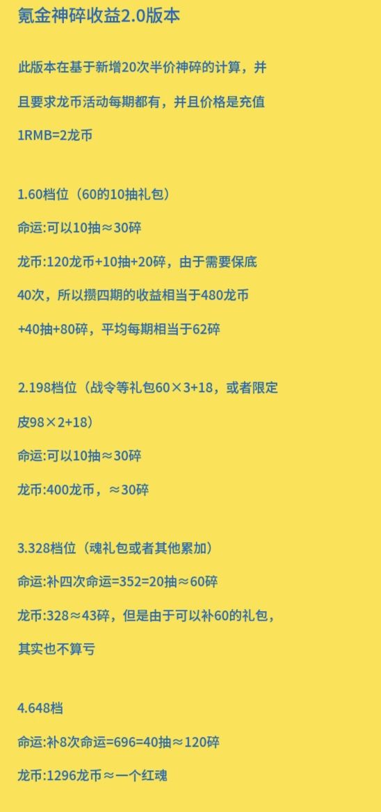 下面是基于新商店的氪金神碎收益对比!
