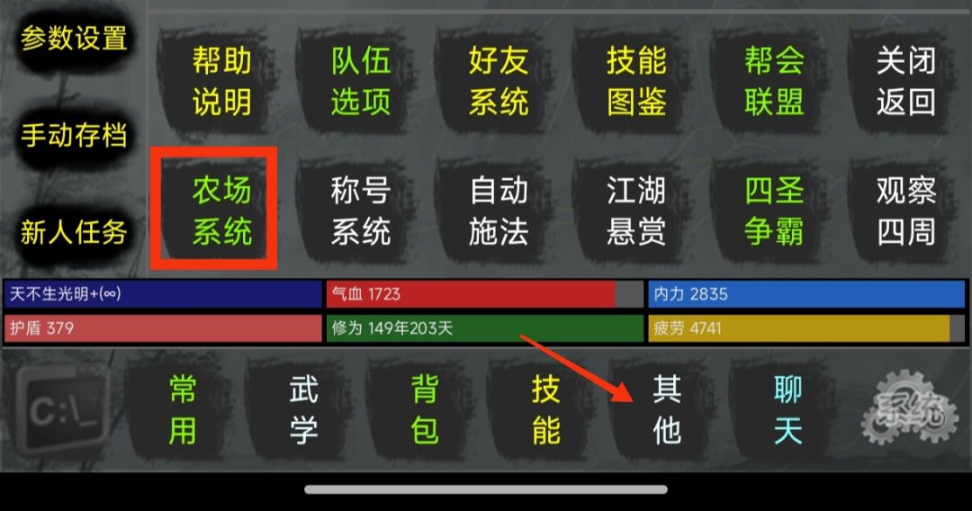 点击其他后点击农田系统,进入农田系统界面。