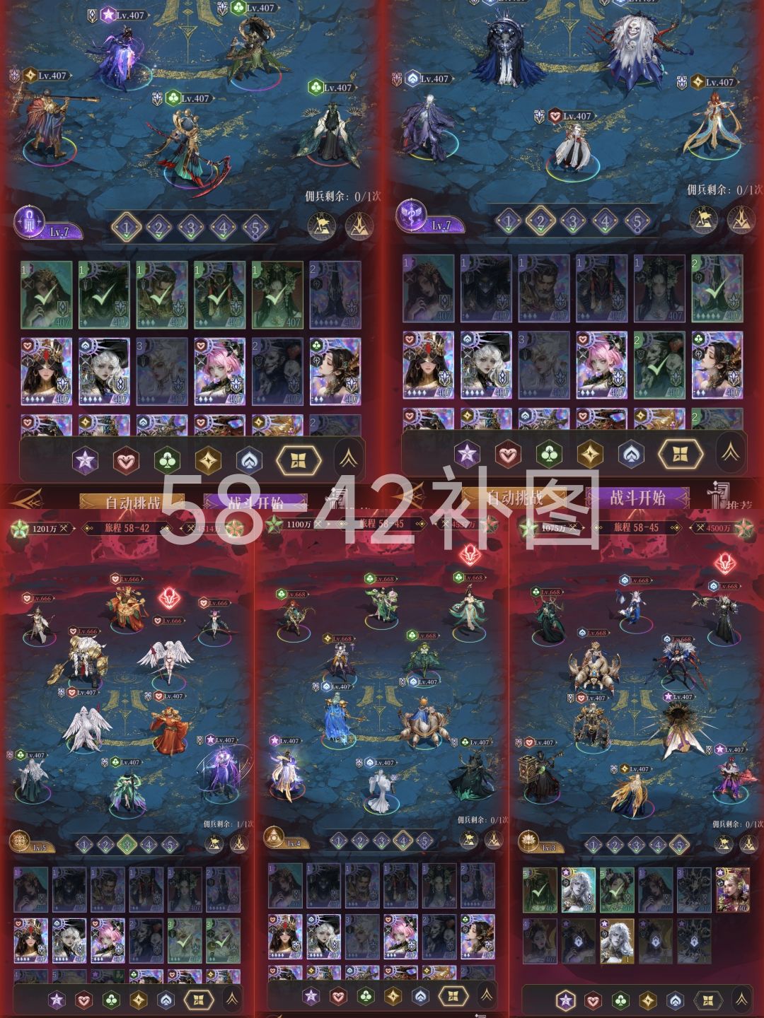 39章至57章五队推图作业,没有雷神,没有哪吒,专为零氪玩家准备。推图心得体会见我另一个帖子因目前最高奖励就到57章(开四觉),除非后续推图有新奖励,否则不再更新[表情_开心],尽量早点推,推过...