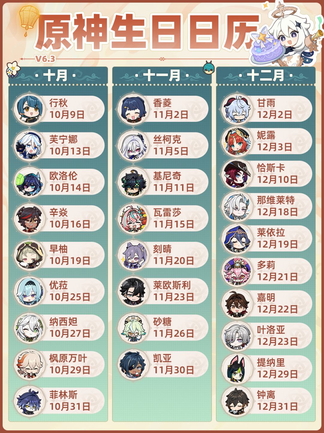 【月之四】原神全角色生日❗海灯节最新版