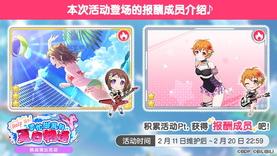 积累活动Pt即可获得附赠演出服装的全新活动报酬成员——★3 户山香澄[不能输的战斗]、★2 北泽育美[偶尔也要优雅一下]!