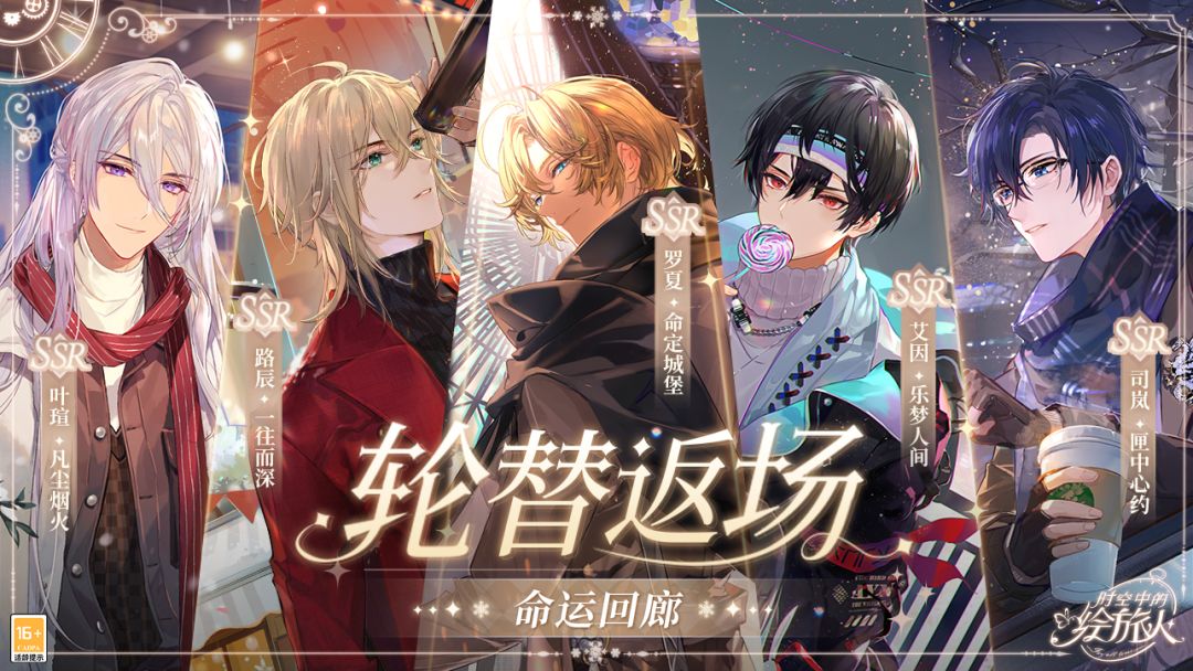 ► 活动画灵艾因SSR[乐梦人间]、路辰SSR[一往而深]、罗夏SSR[命定城堡]、司岚SSR[匣中心约]、叶瑄SSR[凡尘烟火]在画廊「命运回廊」中获得概率提升。