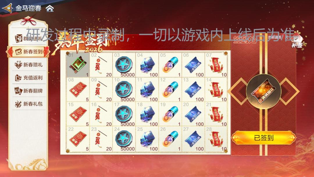 签到有惊喜,新春不缺席!首日可得新年主题场景“满城烟火”!累计签到可解锁更多惊喜,福利拿到手软!