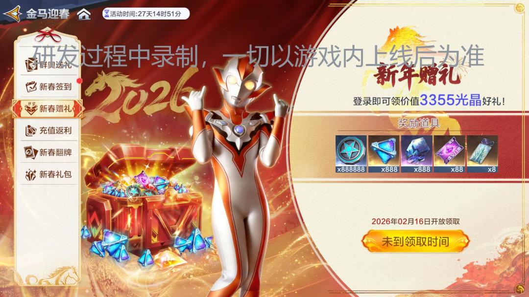 还有888 等离子合金、88 张异变之痕门票及888888 功勋奉上!让你新的一年战力拉满,“马” 上暴富!(2026年2月16日之后可登录游戏一键领取,解锁满满惊喜)